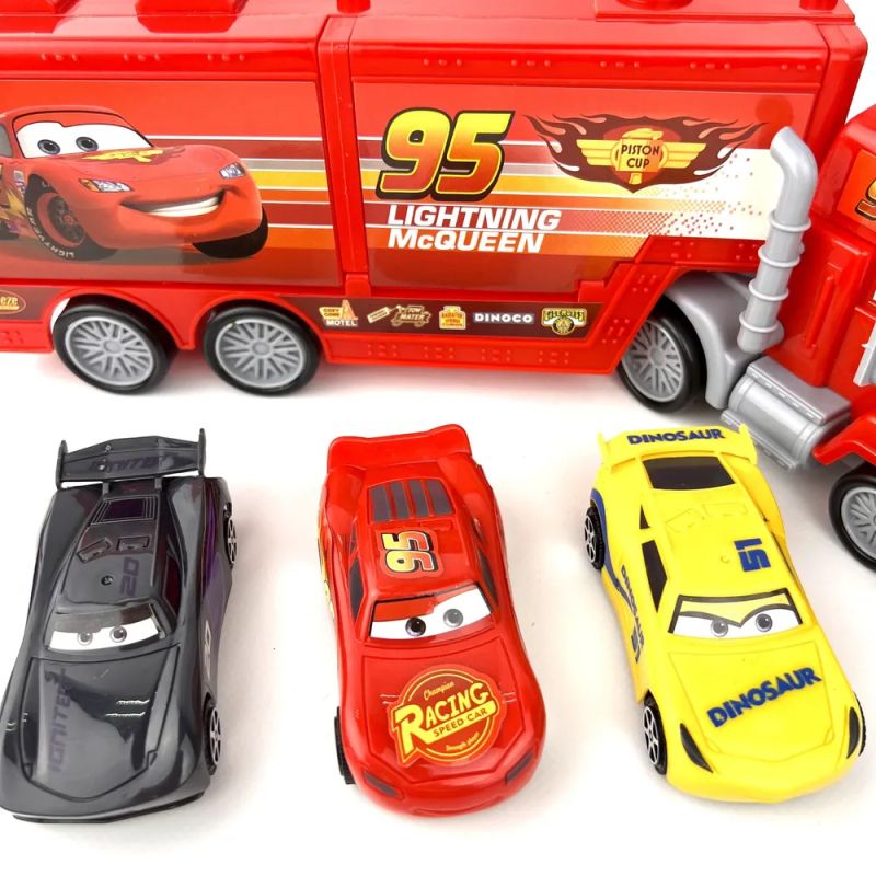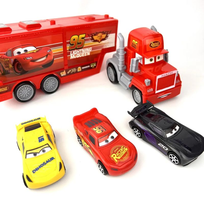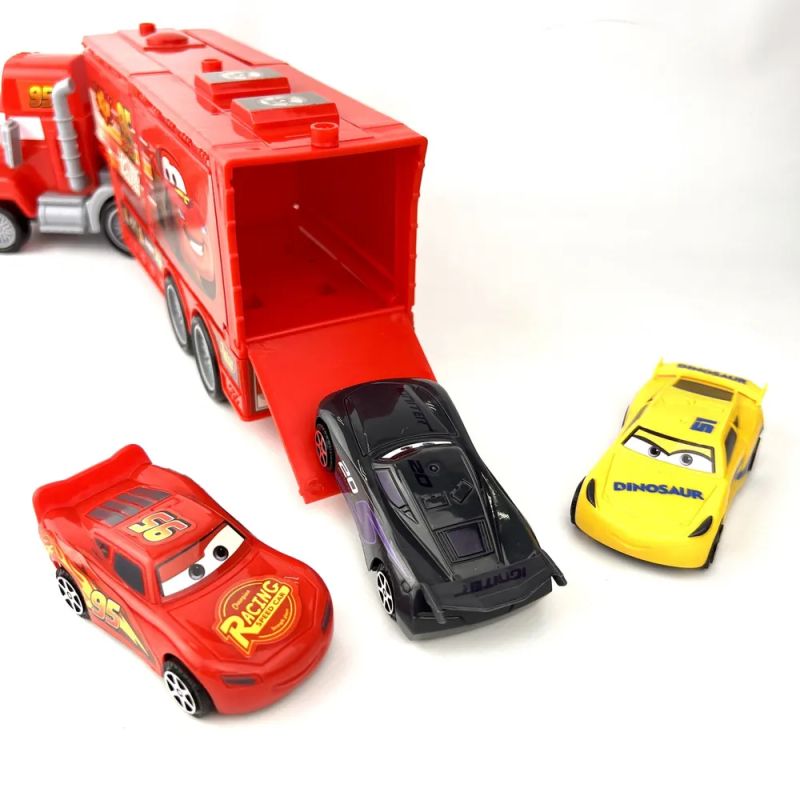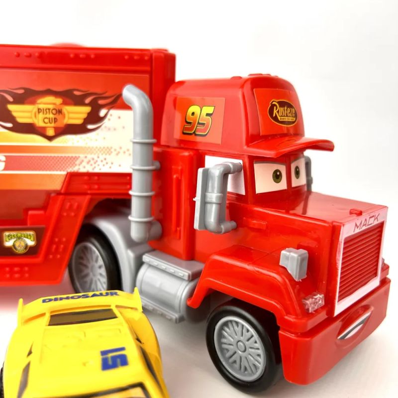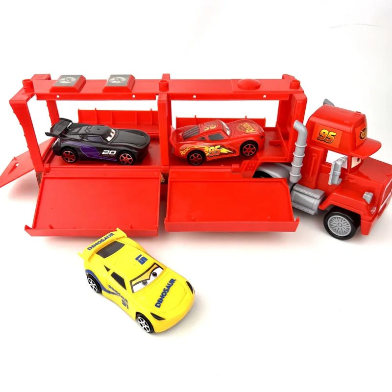 Пренесете се в света на Светкавицата Маккуин с този впечатляващ камион автовоз, вдъхновен от емблематичната анимация Disney Cars. Камионът е изработен от здрав материал и разполага с просторен контейнер с прозрачни капаци за съхранение и пренасяне на 3 колички в различни цветове и дизайни.