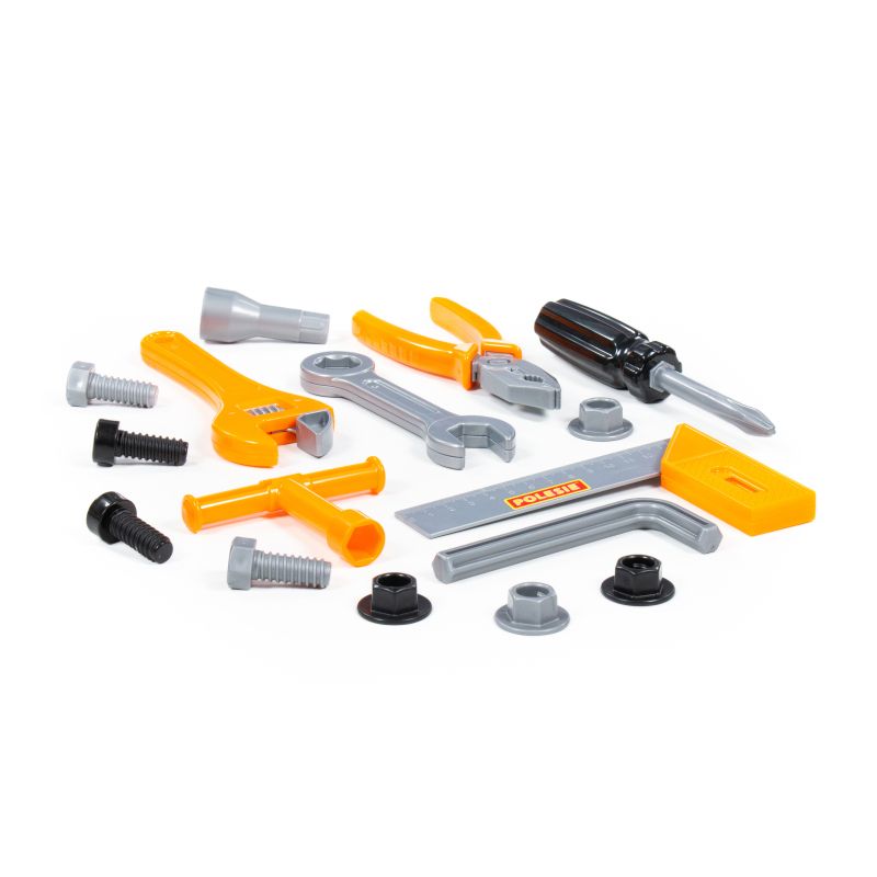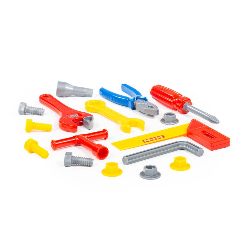 Запознайте детето си с вълнуващия свят на строителството с този пълен комплект от 17 части! Изработени от безопасни и качествени материали, инструментите са специално проектирани за деца над 3 години. Комплектът включва чук, отвертка, ключ и много други полезни инструменти, с които децата могат да се впуснат в забавни игри на строителство и пресъздаване на реалността.