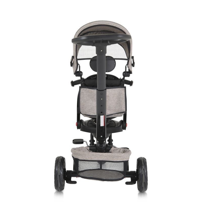 Функции:сгъваемо кормило•Седалка въртяща се на 360°•Сваляща се дръжка•Регулируема облегалка в 3 позиции•Предпазен колан 3-точков•Предна кошничка•Кош заден за аксесоари•Заключване на педалите