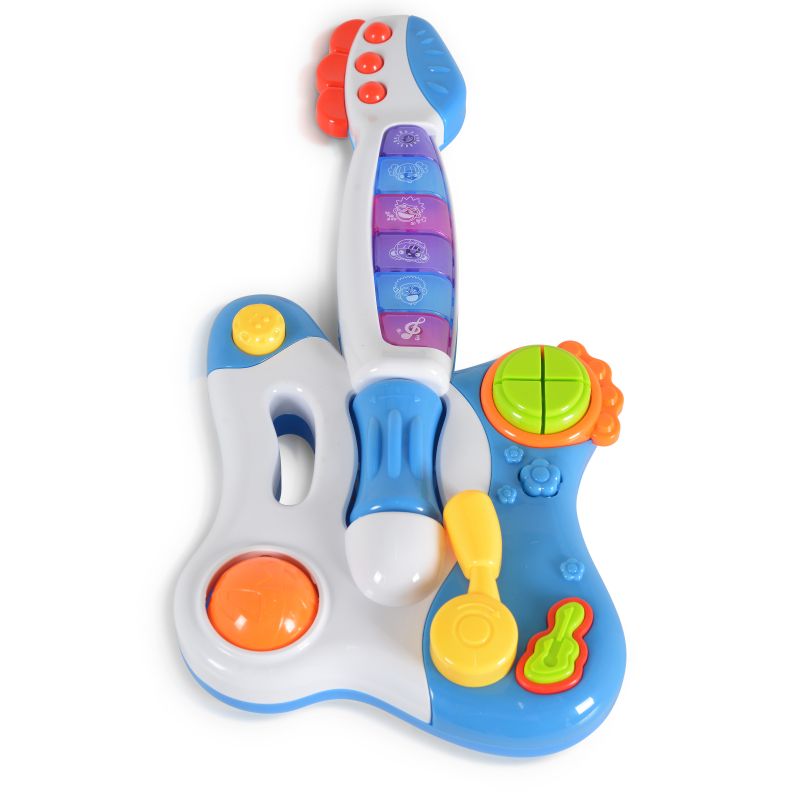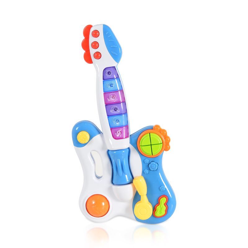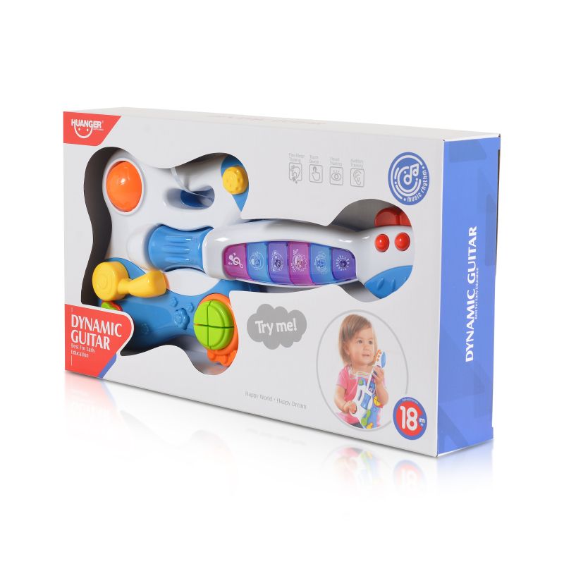Вдъхнете музикален дух на детската игра с интерактивната китара HE0501 от Huanger! Подходяща за деца от 18 месеца нататък, тази китара комбинира реалистични функции с развиваща форма — идеалният инструмент за първи музикални стъпки.