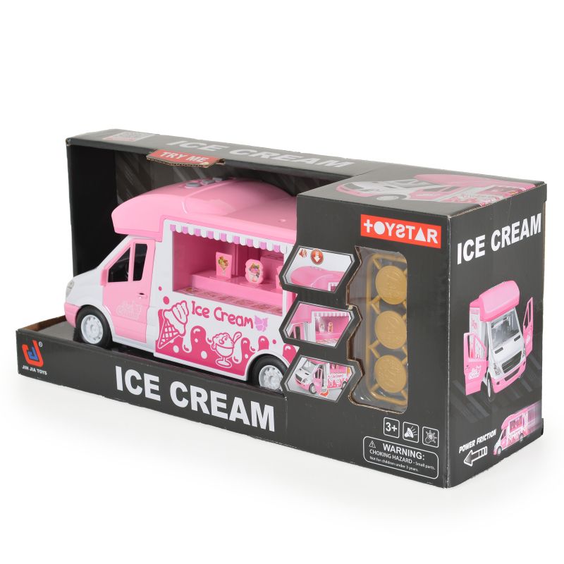 Играчката е снабдена с отварящи се врати и специален отвор за пускане на монети. Малките сладоледопродавачи могат да пускат монета през отвора за плащане и след това да я вземат обратно от задната врата – идеално за развиване на координация и въображение! Сладоледеният камион идва с включени батерии, за да може забавлението да започне веднага след разопаковането.