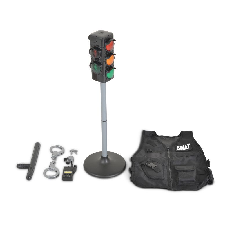 Играта включва всичко необходимо, детето да се почувства като истински пътен полицай.