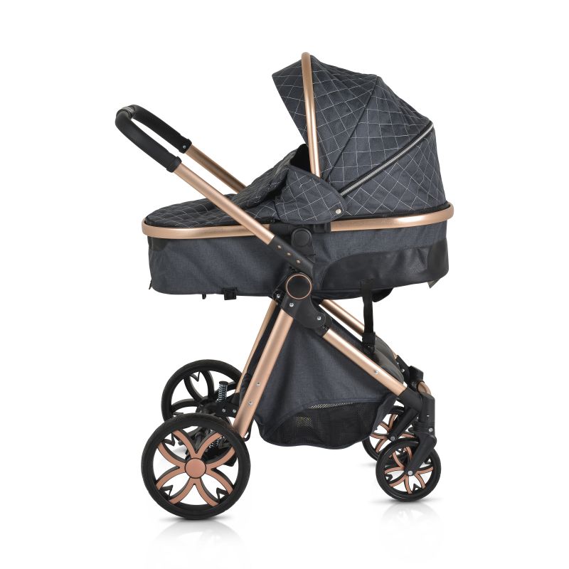 Количката е стилна, функционална, модерна и изключително маневрена. Конструкцията й е изработена от много лек алуминиев материал, което я прави лесна за управление. За да осигурите максимален комфорт на Вашето мъниче, може да регулирате облегалката и седалката до позицията, която е най-удобна за него.