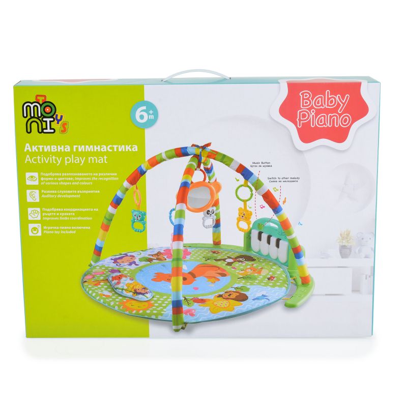 Освен играчки, към активната гимнастика има и музикално пиано с приятни мелодии, което може да се използва самостоятелно.