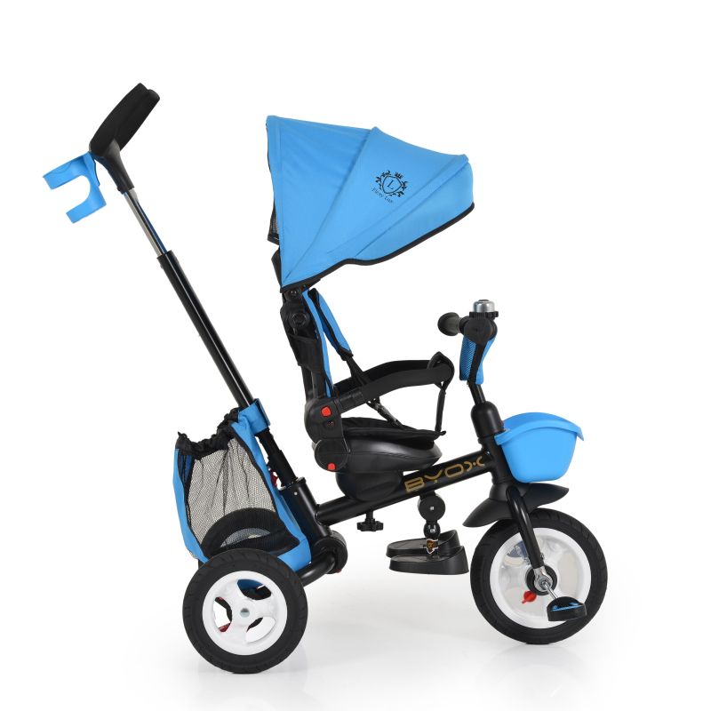 Функции:Телескопична дръжка•Седалка въртяща се на 360°•Сваляща се тапицерия•Сваляща се дръжка•Регулируема облегалка•Предпазен колан 5-точков•Поставка за чаша•Поставка за крака•Мека тапицерия•Кош преден за аксесоари•Звънец•Заключване на педалите•Дръжка с възможнос