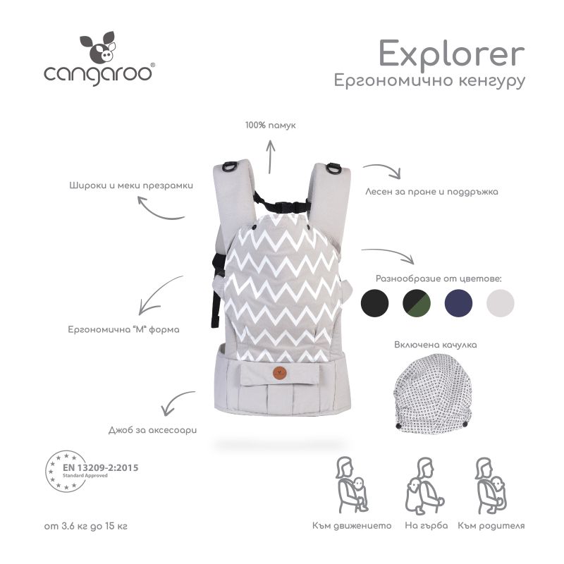 Представяме ви Explorer – перфектният избор за активни родители, които искат да носят своето дете с комфорт и стил.