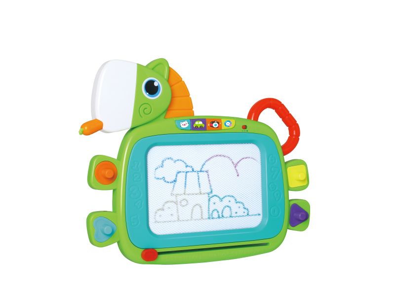 Тази цветна и интерактивна магнитна дъска позволява на децата да рисуват и творят, като едновременно се забавляват с музикални ефекти. С ярки цветове и лесни за хващане елементи, дъската стимулира въображението, фината моторика и координацията око-ръка. Подходяща за деца над 2 години.