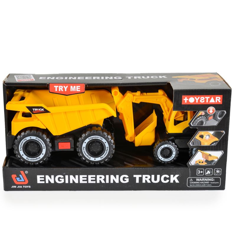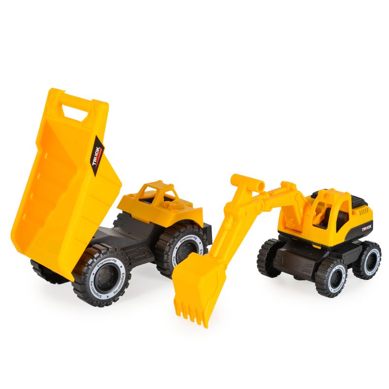 Тази играчка с реалистичен дизайн включва самосвал и багер, който може да се сваля по отварящата се задна платформа.