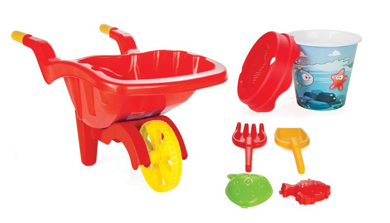 Този комплект със строителна количка, състоящ се от 6 части, е идеален за деца над 36 месеца. Той осигурява часове забавление и стимулира въображението и творческите умения на детето. С максимално натоварване до 5 кг, комплектът е подходящ за ролеви игри в паркове, градини и на плажа.