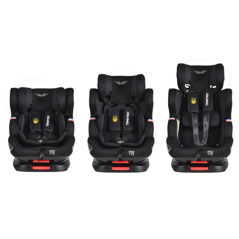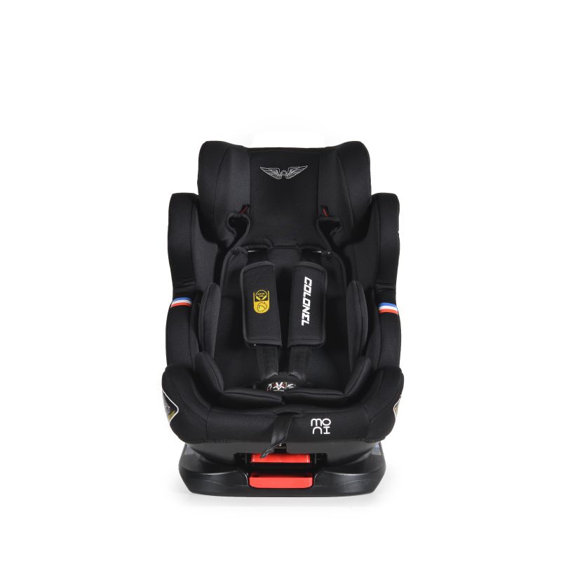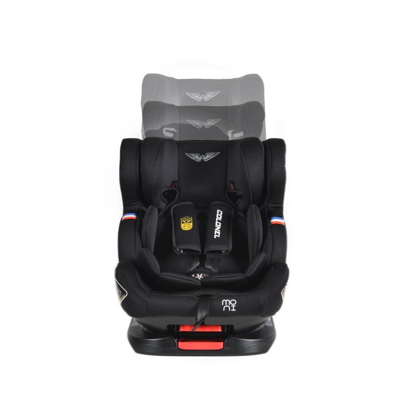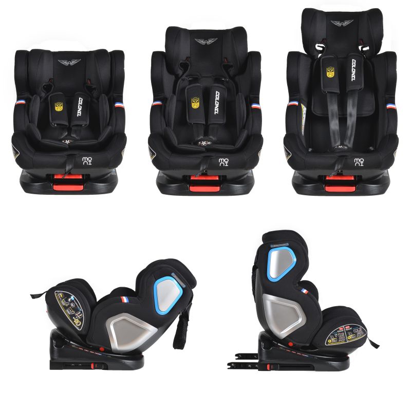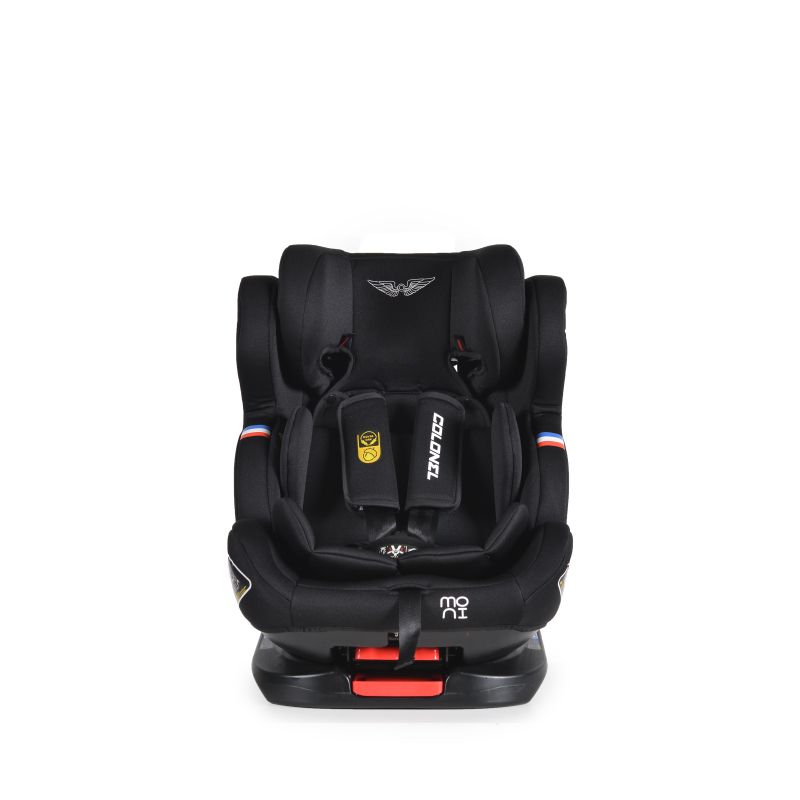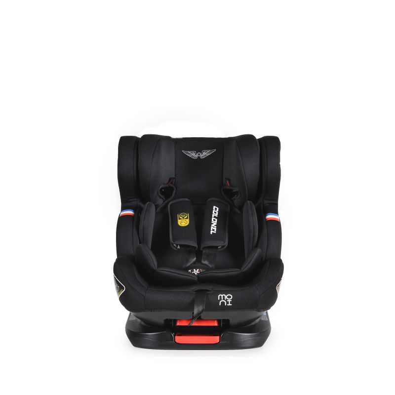 Това детско столче е идеалният избор, ако искате да осигурите удобство и сигурност на Вашето съкровище по време на път. Благодарение на него детето ще се чувства перфектно, а Вие ще сте спокойни, че е защитено по всяко време. Моделът Colonel 360° на Moni е специално създаден за деца от групи: 0,1,2 и 3, като може да се използва от малчугани с максимално тегло до 36 килограма. Допълнителните екстри на този модел са много и го превръщат в един от най-предпочитаните от много родители. Моделът има 4 позиции на наклон на облегалката за гръб, удобно регулиране с една ръка, с наклон до 165°.
