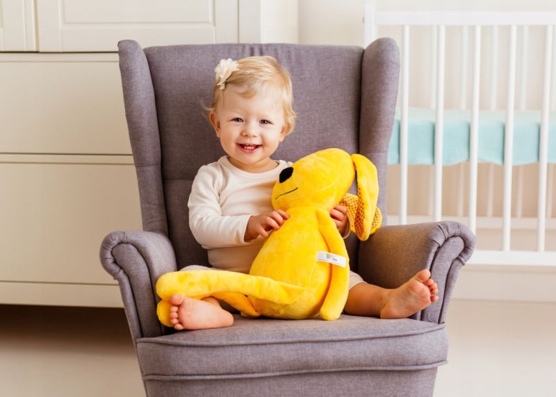Плюшеното животно може да се използва и като декоративен елемент, придавайки приятелски характер на детската стая.