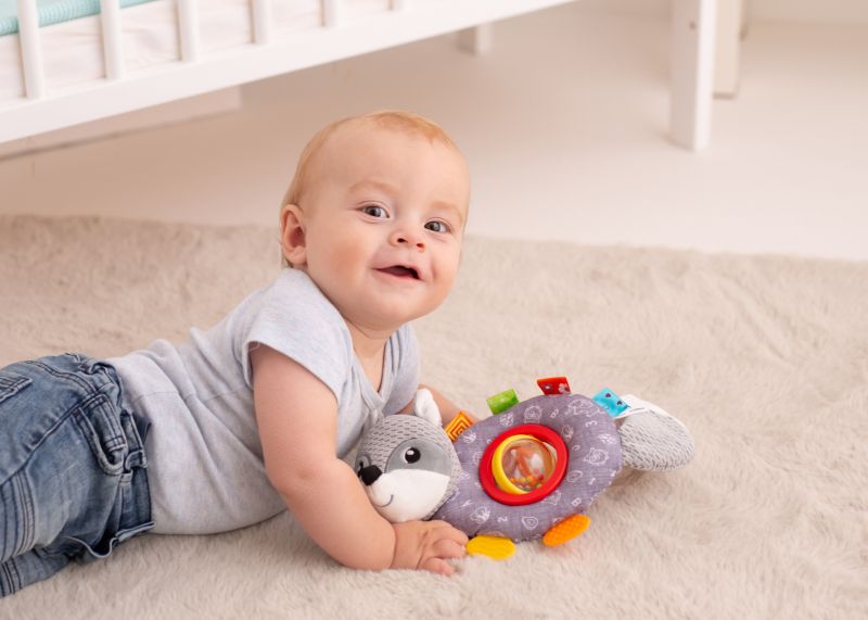 Уникална и забавна играчка, която комбинира меки допирни елементи и въртяща се сфера за допълнително стимулиране на любопитството и моториката на вашето бебе. Изработена е от плюш, пластмаса и силикон за разнообразни сензорни усещания.