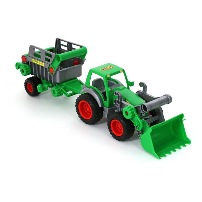 Трактор Farmer с предно гребло и ремарке е чудесен избор за малките фермери и любители на работните машини. С подвижно предно гребло и практично ремарке, този комплект предлага безброй възможности за игра – от „превозване“ на товари до „работа“ на полето или във фермата.