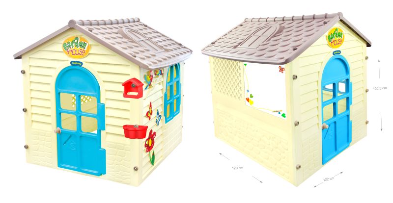 Вратата и прозореца на къщичката могат да се отаварят и затварят.