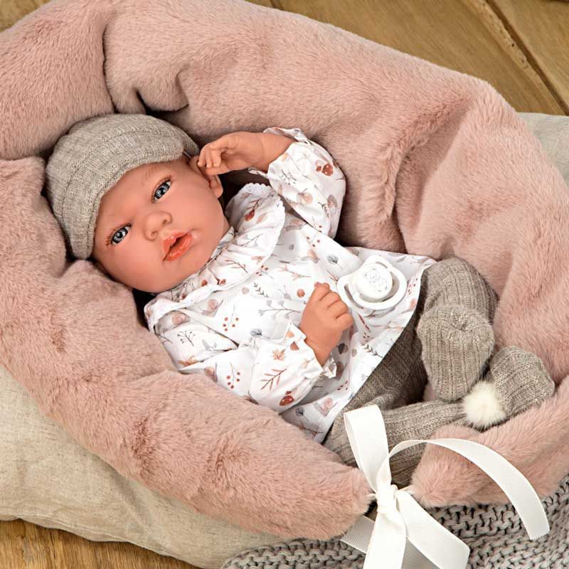 Кукла-бебе Анди в бежов комплект с аксесоари - 40 см, реално тегло