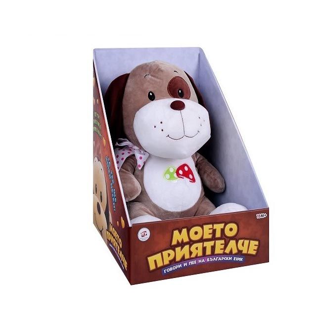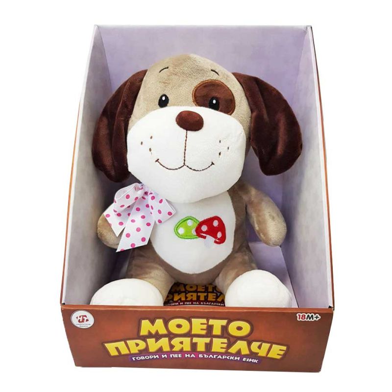 Меко плюшено кученце с 30 минути аудио на български – песни, приказки, стихчета и гатанки. Подходящо за деца над 18 месеца.