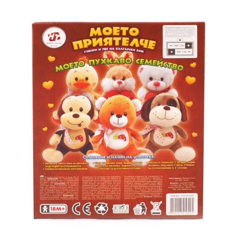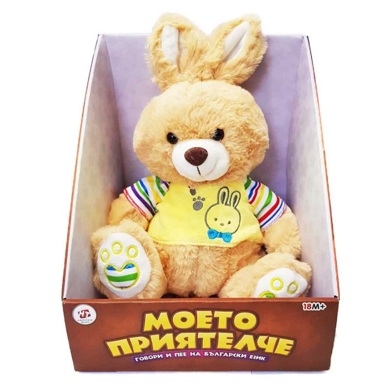 Запознайте се с пухкавия заек „Моето приятелче“ – верен другар в игрите и ученето на вашето дете. Играчката е изработена от мек плюш, приятен на допир, и е с височина 25 см, удобна за гушкане и носене. Вградените функции предлагат 30 минути аудио съдържание на български език, включващо: