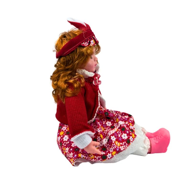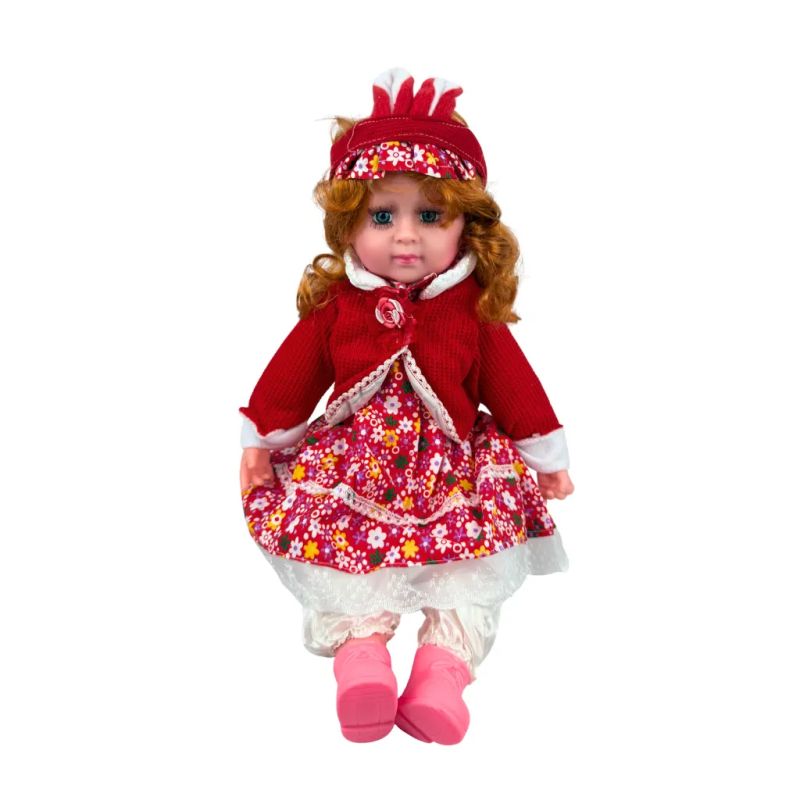 Кукла Мелиса – говори и пее на български език, червен тоалет с цветна рокля
