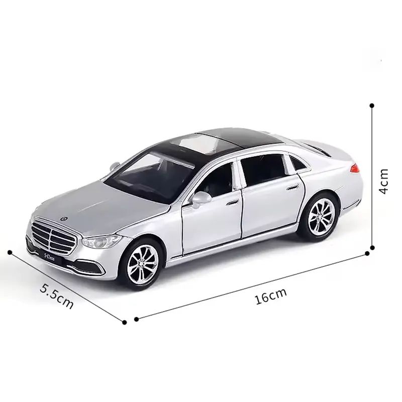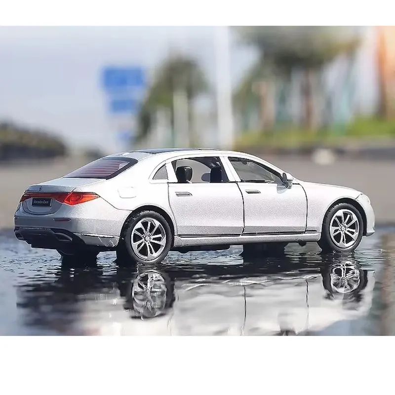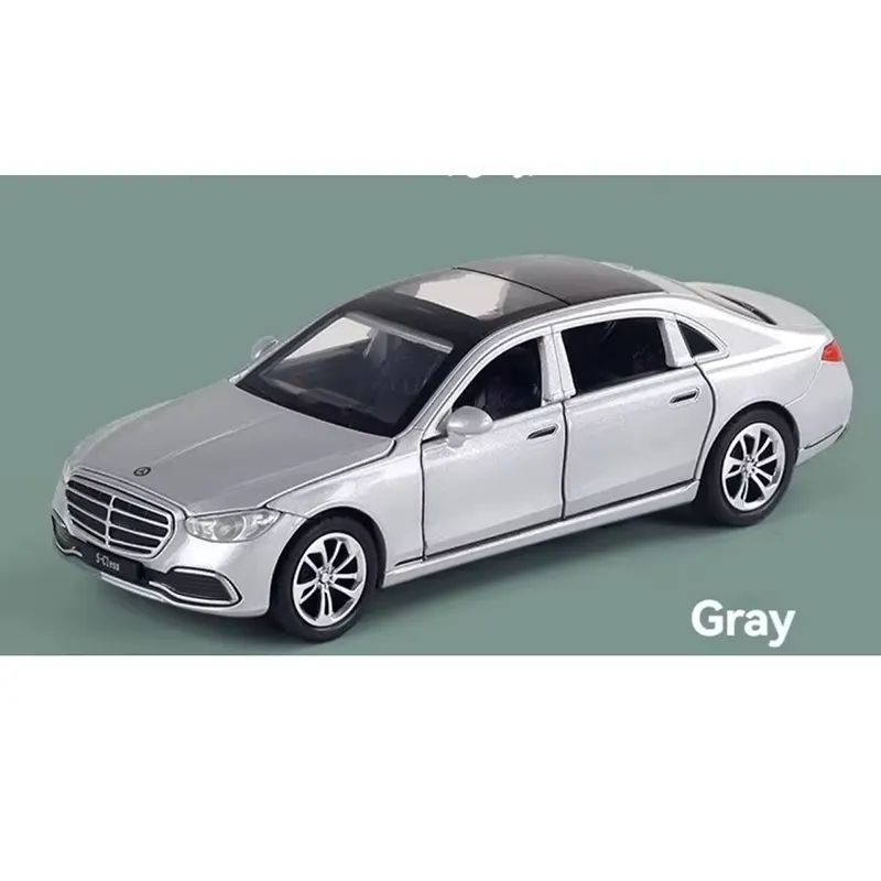 Придайте стил на колекцията си с този умален метален модел Mercedes-Benz S-Class в сив цвят. Изработен от висококачествен метал с прецизни пластмасови детайли, моделът разполага с отварящи се врати, стабилни гуми и реалистичен дизайн, който напълно пресъздава лукса на оригинала. Подходящ за колекционери, за подарък или за игра на деца над 3 години.