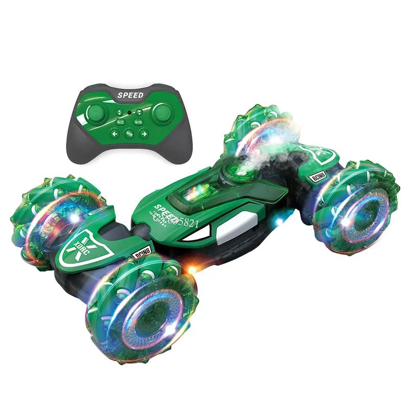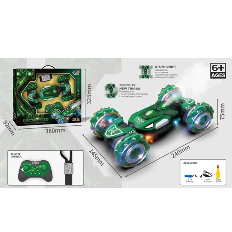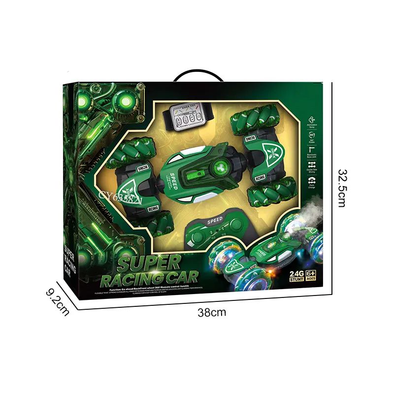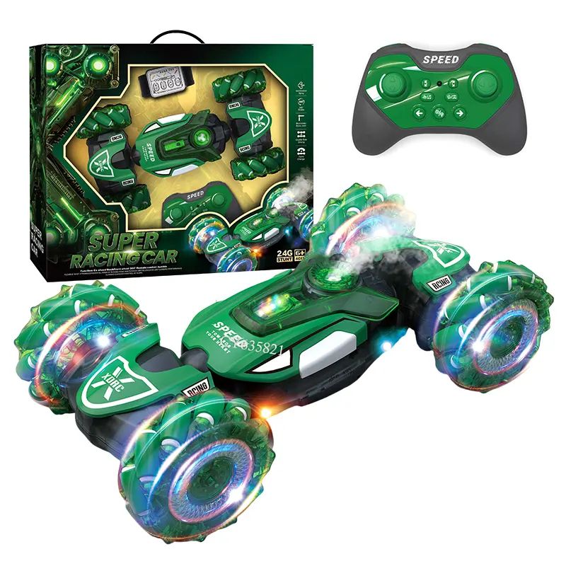 Мощна каскадна кола Super Racing Car с дистанционно управление, светлинни ефекти и въртене на 360°. Идеална за малки любители на скоростта и каскадите!