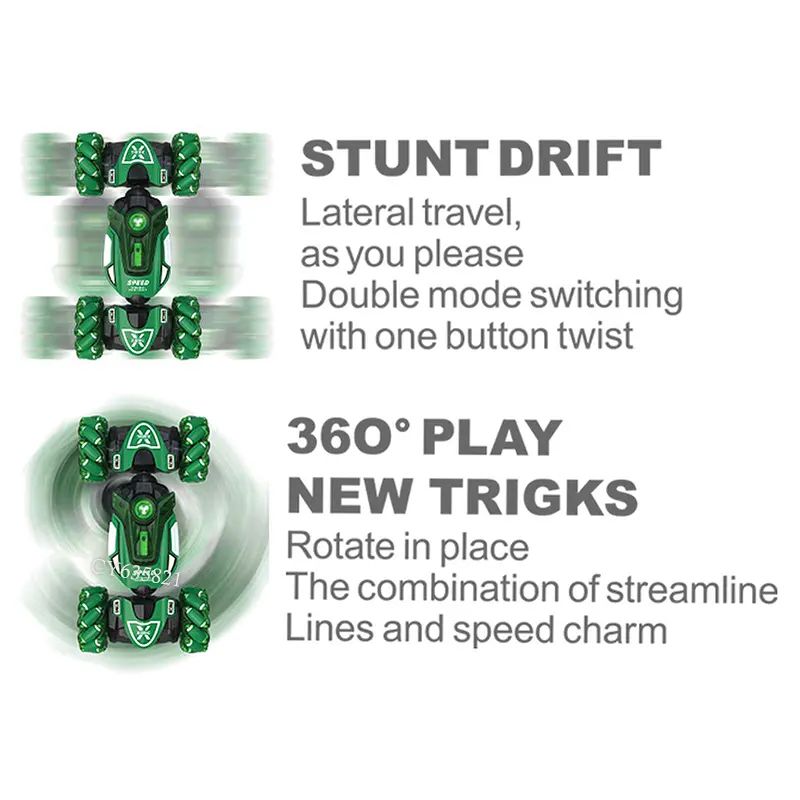 С помощта на удобното дистанционно управление 2.4GHz колата се движи плавно напред, назад, наляво и надясно, извършва каскади и завъртания с едно натискане на бутон.