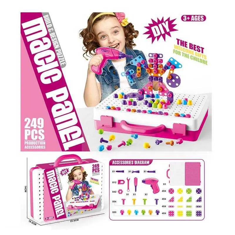 Разкрий творческите способности на детето с този детски конструктор мозайка с винтоверт – 249 части!