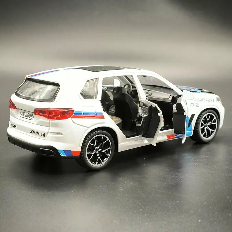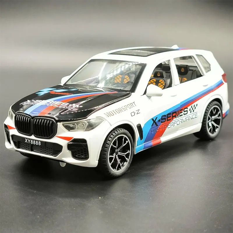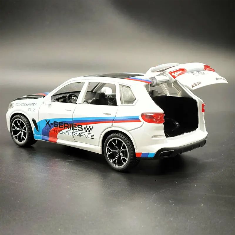 Спортната визия в бял цвят с M-серия ленти и надписи „X-Series High Performance“ придава динамичен характер и прави модела подходящ както за колекционери, така и за любители на автомобилите.