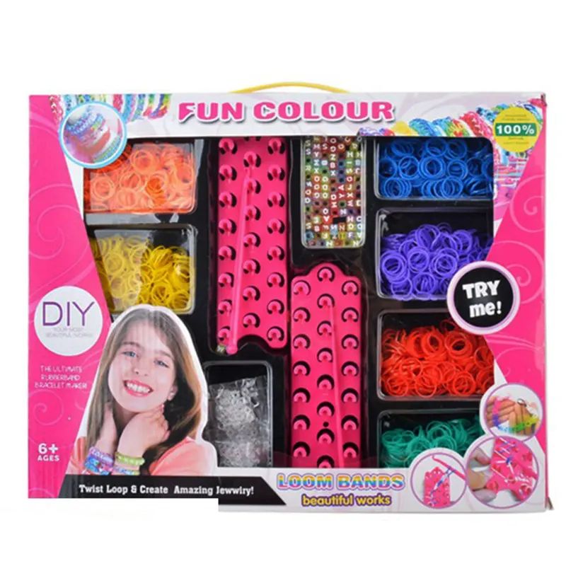 Разкрий творческия потенциал на детето с този пъстър DIY Loom Bands Fun Colour комплект! В кутията ще откриете богата палитра от цветни силиконови ластици, удобна плетачна дъска, кукичка и разнообразни мъниста, включително букви за персонализиране.