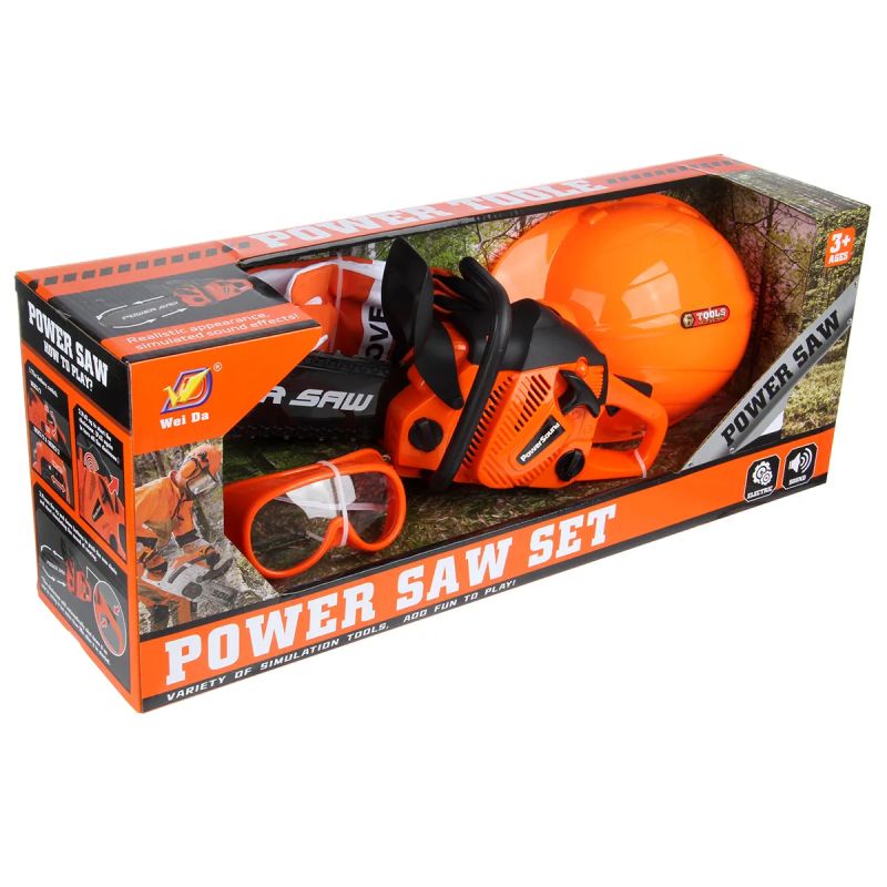 Позволете на вашето дете да се потопи в света на майсторите с този детски комплект Power Saw. Играчката-резачка е изработена в атрактивен оранжево-черен дизайн и издава реалистични звуци, които правят играта още по-вълнуваща и истинска. Резачката е безопасна за деца – няма остри части и е създадена изцяло за ролеви игри.