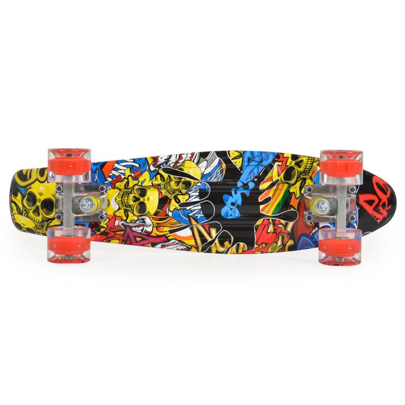 Скейтбордът 22" Printed Graffy, Byox е с лек, маневрен и надежден борд, създаден за ежедневни приключения. Комбинацията от висококачествени материали, LED колела и впечатляващ графичен дизайн го прави перфектният избор за каране в града.